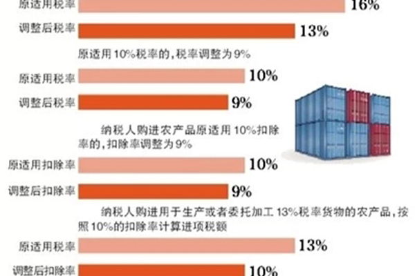 3月21日,财政部、税务总局、海关总署三部门联合发布《关于深化增值税改革有关政策的公告》,今年4月1日起,增值税一般纳税人(以下称纳税人)发生增值税应税销售行为或者进口货物的税率、境外旅客购物离境退税物品的退税率等均有不同程度下降。例如,纳税人发生增值税应税销售行为或者进口货物,原适用16%税率的,税率调整为13%;原适用10%税率的,税率调整为9%。此外,纳税人取得不动产或者不动产在建工程的进项税额不再分2年抵扣。