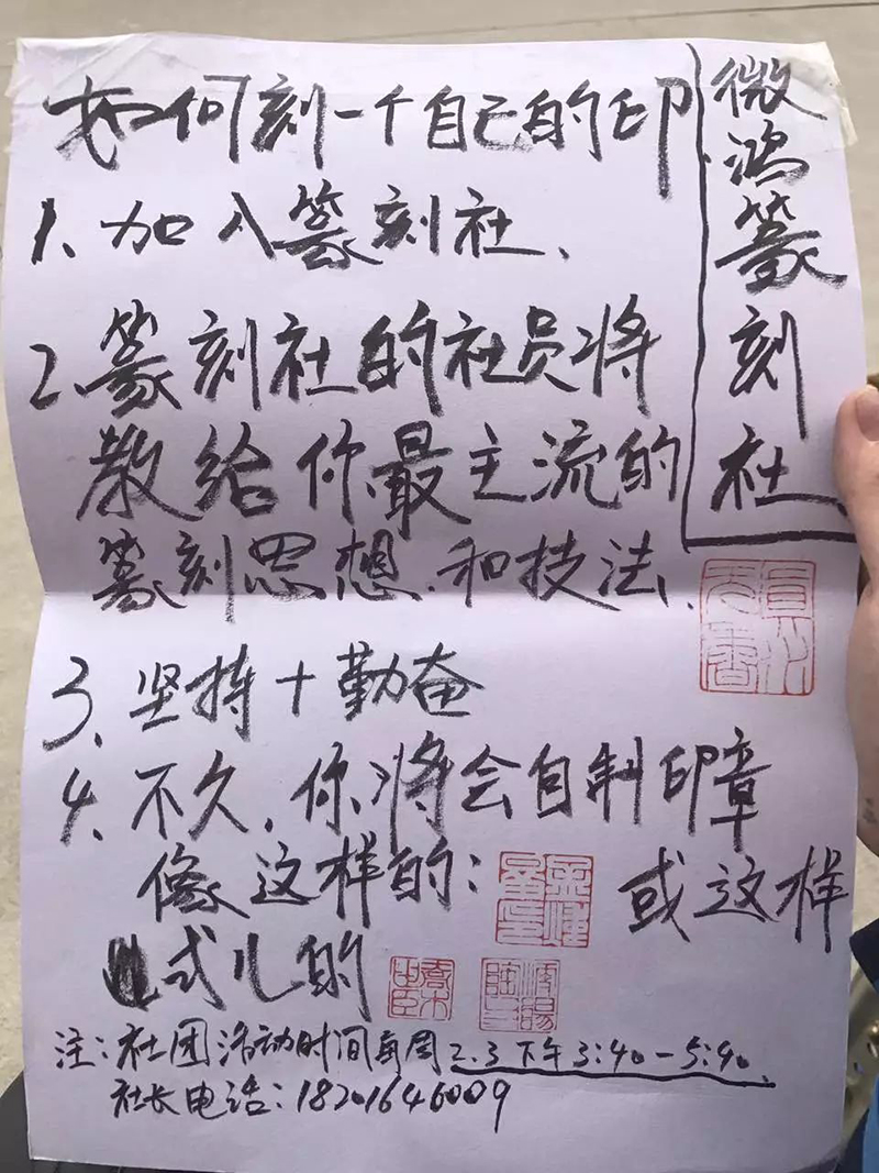 包括篆刻,那时他跟我说想加入篆刻社,每周末自己去潘家园摆摊,并卖出了自己的作品(其实有时候挣得还没石头的材料钱多),但是能得到大家的认可,他很开心。