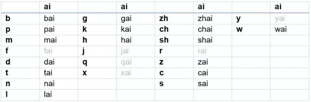 而题主说到的 fai 这个音节,即是表格中缺失的部分:
