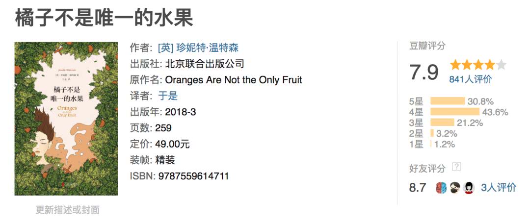 故事并未在此停止,她慢慢找到了自己的生活,就像书名“橘子不是唯一的水果”所揭示的一样,生活还有别的模样,她朝着自己的想象去塑造生活。