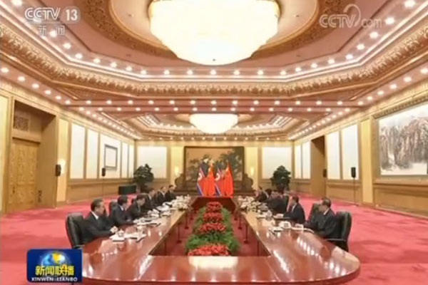 会谈后,习近平和夫人彭丽媛为金正恩和夫人李雪主举行欢迎宴会并共同观看演出。
