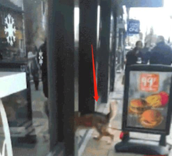 事情是这样的,某天他带哈士奇出去遛弯,经过一家快餐店的时候,他觉得有点饿了,便想进去点个小食吃一下。于是,他就把哈士奇拴在快餐店外的一个广告牌上。
