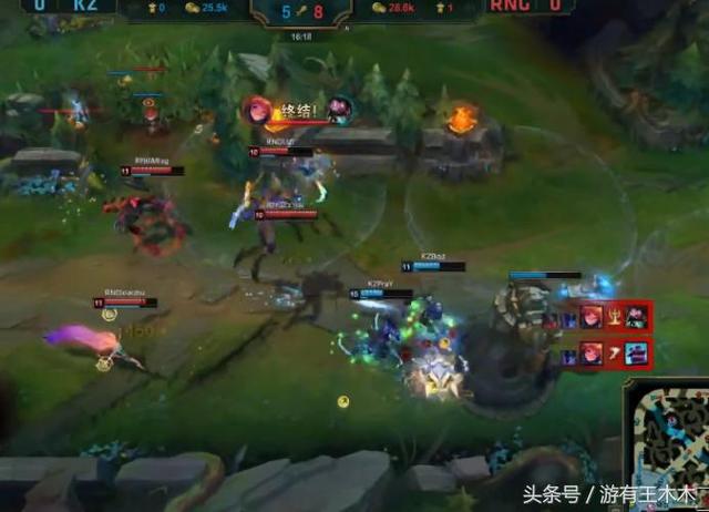 21分钟KZ布隆迷失野区,被打残逼出了闪现,德莱文也被佐伊打残,也交出了闪现。随后RNG战队轻松推平中路二塔,再一步扩大经济差距。