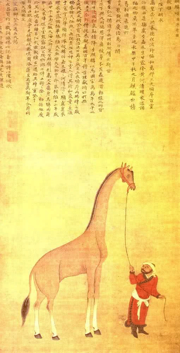 是了,所谓的麒麟就是指长颈鹿,“麒麟”以“鹿”为偏旁,古人在造这个词的时候,已经明白地告诉了我们,麒麟由鹿演化而来,但它又不是鹿,比鹿更为高大。