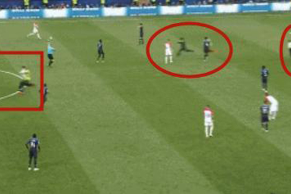 不仅球员上演精彩的表现,在决赛中球迷也是非常给力。比赛第52分钟,当克罗地亚持球进攻时,赛场内突然出现4名球迷,他们在场内上演极速狂奔,速度堪比姆巴佩。克罗地亚的进攻也不得不终止,球队主帅达利奇无奈的摊了摊手,不过保安没有让事态延续,他们迅速上演围堵,合力逮住这几位球迷。