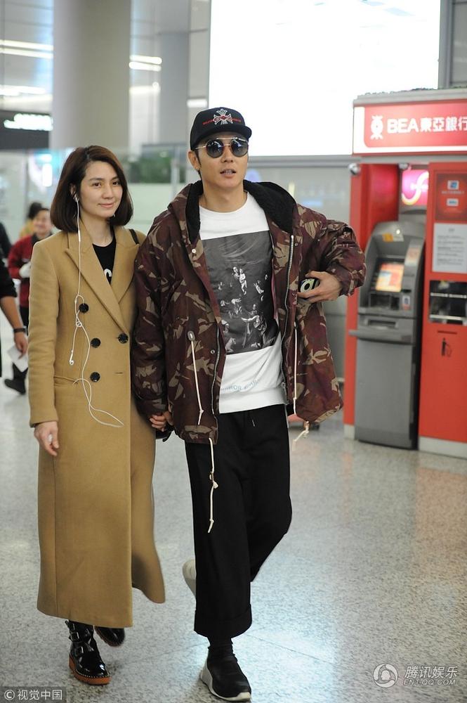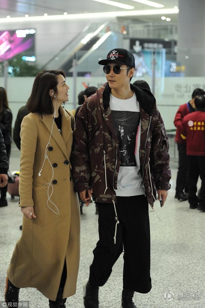 2018年2月26日,上海,张丹峰和洪欣夫妇甜蜜抵达机场。洪欣素颜展示好皮肤,与丈夫手牵手甜蜜十足。