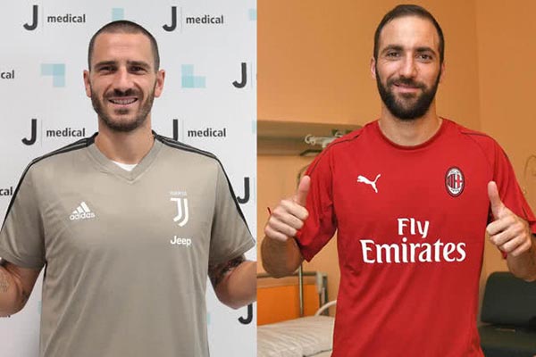 北京时间今天凌晨,AC米兰官方宣布从尤文图斯租借了阿根廷前锋伊瓜因,租借费用为1年1800万欧元,明年夏天,米兰有权以3600万欧元的价格将其买断。与此同时,米兰和尤文还完成了博努奇和卡尔达拉两名中后卫的互换交易,两人的转会标价均为3500万欧元,上赛季的AC米兰队长博努奇在一个赛季之后宣告重返尤文图斯。在过去的一个半赛季里,卡尔达拉被尤文租借到亚特兰大效力,此次他与AC米兰签下5年长约。