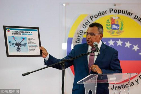 雷韦罗尔5日在国家电视台宣读一份声明,指认嫌疑人4日下午操纵两架无人机,各搭载1公斤C4塑胶炸药,试图向马杜罗夫妇、政府高官发动袭击。马杜罗等人当时正在首都加拉加斯的玻利瓦尔大道上出席国民警卫队组建81周年庆典。