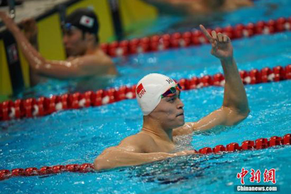 随后的比赛孙杨继续扩大领先优势,第300米时游出2分48秒33,已经超出第二名1秒多。冲刺阶段,孙杨开始加速,最终以3分42秒92率先抵达终点,排名二、三位的江元骑士和萩野公介被远远甩在身后。另外一名中国选手季新杰以3分50秒06的成绩,获得第五名。