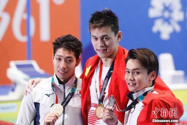 “我知道我的训练很好。为了备战东京奥运会,我每天会游大概20公里左右,训练很苦。朱指导和丹尼斯都对我说,即使这样也要勇往直前,回报支持我的粉丝。我要不断的强化自己,用好成绩告诉对手们,我依然还是很强!”孙杨说。