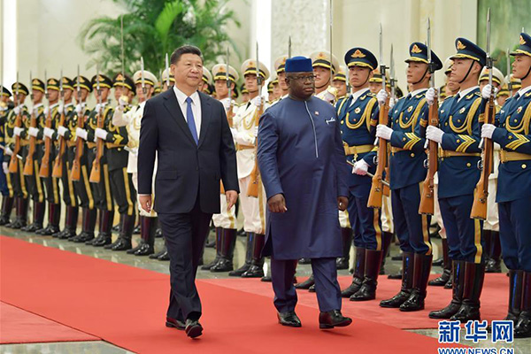8月30日,国家主席习近平在北京人民大会堂同塞拉利昂总统比奥举行会谈。这是会谈前,习近平在人民大会堂北大厅为比奥举行欢迎仪式。