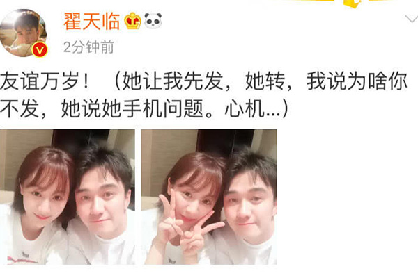 9月2日晚,演员翟天临通过微博晒出了两张与好友杨紫的亲密合影照,并附文称:“友谊万岁!(她让我先发,她转,我说为啥你不发,她说她手机问题。心机…)”。据悉,两人已经相识了八年,结缘于北京电影学院。在翟天临就读北京电影学院研究生院时,曾担任过一段时间本科班的助教老师,在此期间教过不少学生,其中就包括杨紫和张一山。“学霸”翟天临可是年纪轻轻就考取了北电的博士,可谓是娱乐圈最年轻的的博士生了。