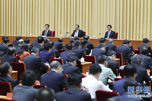 李克强在会上讲话。汪洋、王沪宁、赵乐际、韩正出席会议。