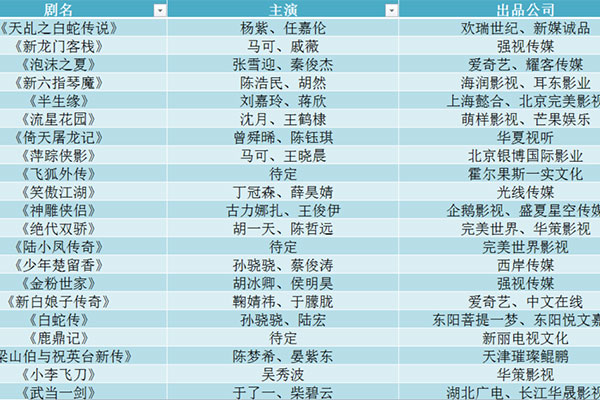 从这片单来看,有还没播出的《半身缘》、《新龙门客栈》等,还有外界宣传的偶像剧《准角遇到爱》、《放羊的星星》等也将被翻拍。纵观大环境,我们可以发现现在的电视剧大多数都是以翻拍剧或者是IP改编剧为主。其实这也怪不得投资方,自2018广电新规出台后,很多电视剧拍完了却都面临着播不了的厄运。包括《爱无痕》《谋圣鬼谷子》《重耳传》《蔓蔓青萝》等。