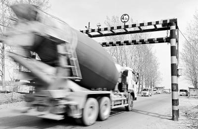 原本2.7米的限高架被锯断,新设置的4.3米限高架则几乎所有大货车都可通过。