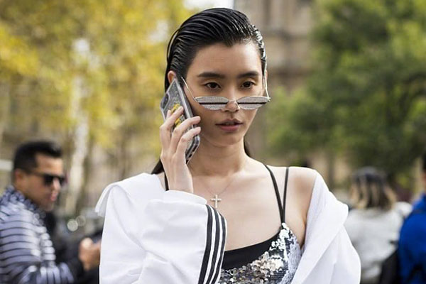 这两天的巴黎时装周奚梦瑶也是高调亮相,运动外套里面穿了一件亮闪闪的bra,为了显示很酷还假装拿起手机打电话。这一身最大的亮点可能就是她的发型了,梳了一个非常复古的油头。emmmm,虽然是时尚,但是强迫症表示只想立刻拖着她去洗头!