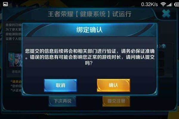 10月25日,腾讯游戏通过官方微博公布,再次升级“《王者荣耀》健康系统”,以北京地区为起点,正式启动《王者荣耀》全部用户的强制公安实名校验,未通过校验的游戏账号将禁止登录。与此同时,为杜绝未成年人“玩小号”的问题,腾讯游戏规定一个未成年人实名信息仅允许用于微信和QQ平台各一个游戏账号的校验。