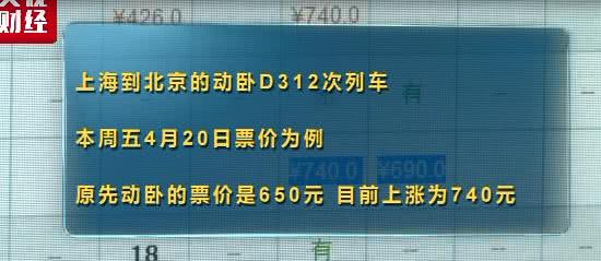 记者同时查询了近期的京沪高铁的卧铺动车票,发现部分车次价格出现上涨,以上海到北京的动卧D312次列车本周五4月20日的票价为例,原先动卧的票价是650元,目前上涨为740元。专家表示,浮动票价的执行方式在2015年开始试点,浮动票价的定价是基于铁路大数据的分析。