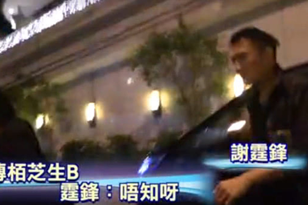 但车上坐着的谢霆锋表哥和其他工作人员全都一脸严肃。不回答问题也不看镜头。