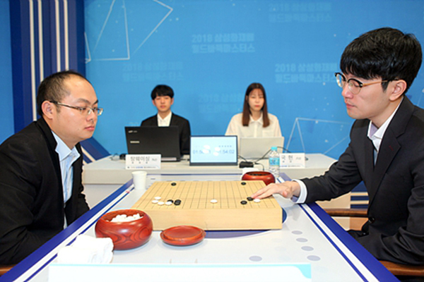 当棋局进行到关键时刻,中国棋手柯洁突然拍了自己两下,为刚才的误算而懊恼。对面的韩国棋手安国铉紧张地盯着棋盘,此时形势极度微妙,胜负在半目之间摇摆。读秒声中,安国铉“送”出一个大勺,此子落定,再无悬念,柯洁将冠军奖杯收入囊中。