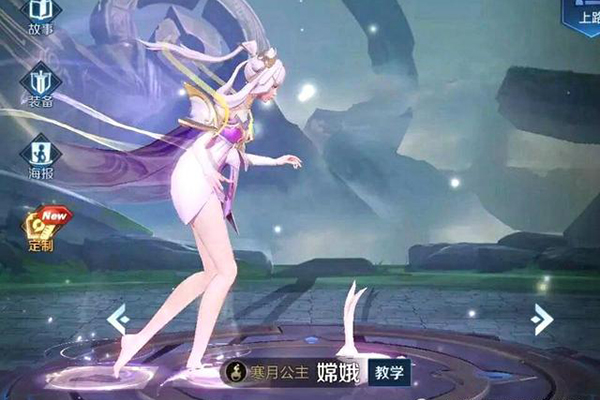 可以看到新英雄嫦娥称号寒月公主,其模型和原画一样都是白衣白发,同时也是紫色纹路的衣袖,通过展示界面来看应该是光着脚丫的嫦娥准备怀抱玉兔的场景,不过相比嫦娥,小编更好奇的是展示背景图案的更改,与现版相比背景变得更加丰富和立体感,应该是未来大版本更新后的全新背景展示,当然具体效果还以官方正式发布为准!