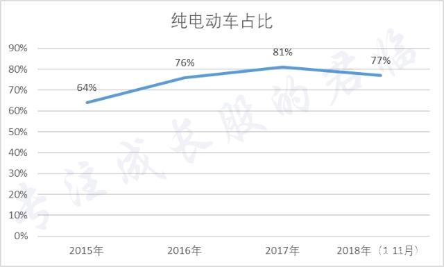 从这几年的纯电动车在新能源汽车中的占比可以看出,总体是在提高的。