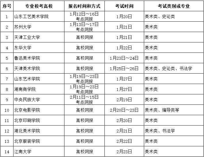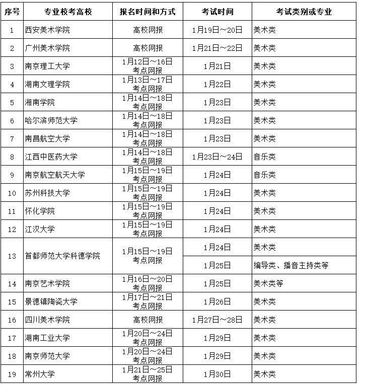 上述表中报名方式为高校网报的,其安排详见各高校招生简章;