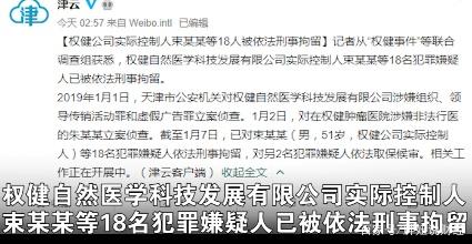 而最新来自“权健事件”等联合调查组的消息证实,权健自然医学科技发展有限公司相关的18名犯罪嫌疑人已被依法采取刑事拘留措施。