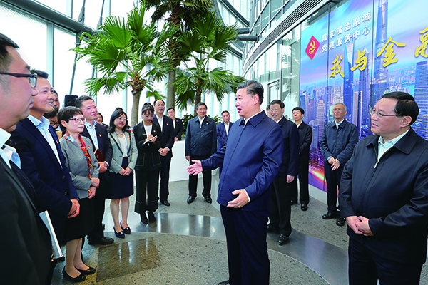 2018年11月6日至7日,中共中央总书记、国家主席、中央军委主席习近平在上海考察。这是6日上午,习近平在上海中心大厦22层的陆家嘴金融城党建服务中心,同正在联合开展主题党日活动的企业党员亲切交谈。