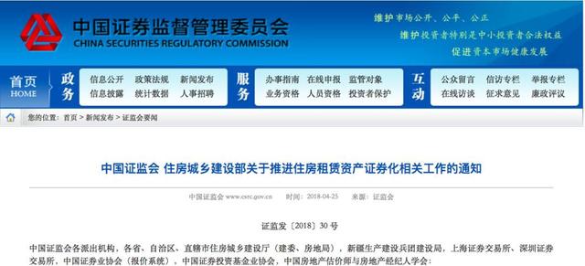 为了解决上述问题,4月25日下午,中国证监会、住房城乡建设部联合印发《关于推进住房租赁资产证券化相关工作的通知》(以下简称《通知》),对开展住房租赁资产证券化的基本条件、政策优先支持领域、资产证券化开展程序以及资产价值评估方法等作出明确,并将在审核领域设立“绿色通道”。