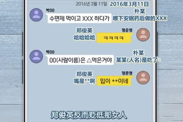 例如,16年3月11日,郑俊英在友人迷奸女受害者后,还贬低受害者。