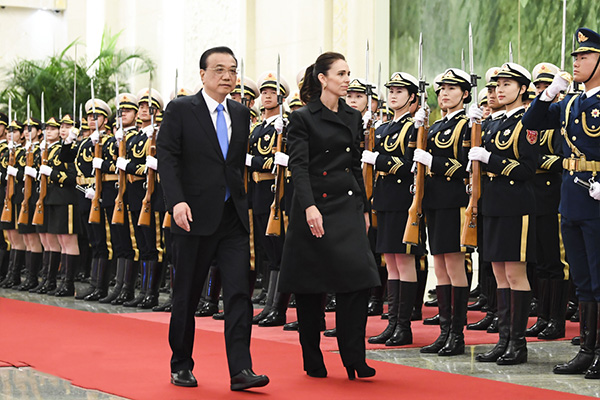 4月1日,国务院总理李克强在北京人民大会堂同新西兰总理阿德恩举行会谈。这是会谈前,李克强在人民大会堂北大厅为阿德恩举行欢迎仪式。