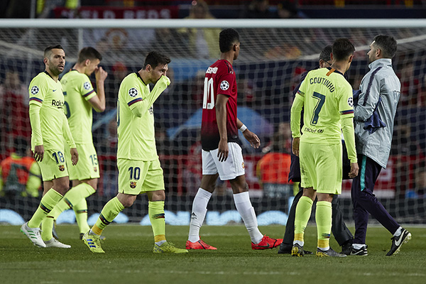 北京时间2019年4月11日凌晨3:00,2018-2019赛季欧冠1/4决赛首回合正式打响,曼联坐镇主场迎来巴塞罗那的挑战。上半时比赛苏亚雷斯制造卢克-肖打进乌龙,梅西被斯莫林撞倒后血染赛场;下半场,双方调兵遣将,再无攻破对手大门,最终巴萨客场1-0击败曼联,两回合淘汰赛中占得先机。