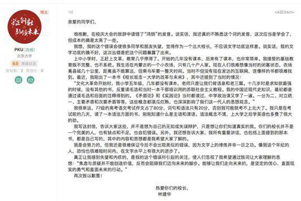 看过林建华校长的道歉信,我同很多网友一样,认可其文风质朴和态度坦白。但是也正是从其坦言中,我发现了一个远比白字更大的问题。