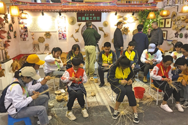 学生艺术实践工作坊是展演活动的板块之一,同样于昨日开幕,围绕中华优秀传统文化艺术传承,展示剪纸、皮影、编织、刺绣、扎染等具有地域特征、民族特色和教育特点的优秀传统文化艺术项目。