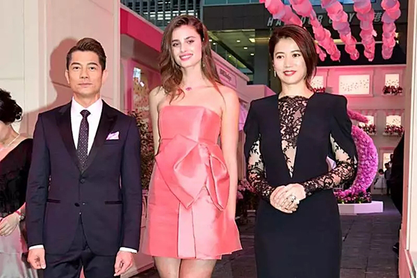 4月16日晚,郭富城和袁咏仪,还有维密超模Taylor Hill共同出席某护肤品牌活动。三人同框,十分亮眼。郭富城一身西装,发色换回了正常的黑色,十分帅气有型。