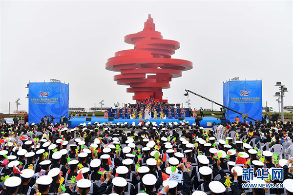 23日10时30分许,国家主席、中央军委主席习近平在青岛国际会议中心集体会见应邀前来参加中国人民解放军海军成立70周年多国海军活动的外方代表团团长,代表中国政府和军队向各国海军官兵表示热烈欢迎。
