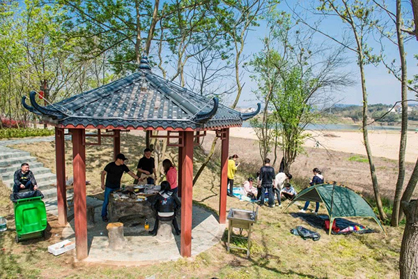 对于吃货来说,木兰水镇简直就是天堂。原因是这里有非常齐全的户外烧烤设备,从凉亭到帐篷,从烤架到烤炭,甚至是新鲜的各种食物和各种调料,这里都备得非常齐全。你也可以自带各种烤具和帐篷,找一片草地扎上帐篷,放好烤架,自己动手丰衣足食。