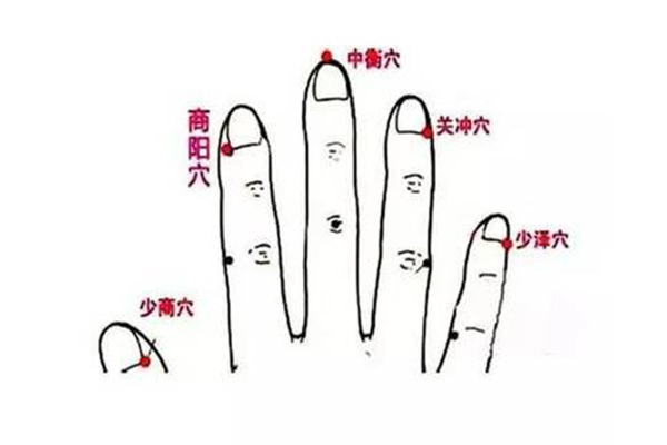 大拇指。大拇指对应人体肺经,肺主气,司呼吸。拇指上的少商穴,可排泄体内肺经之气,有解表清热、通利咽喉、苏厥开窍的作用。外感风热引起咳嗽、咽喉肿痛时可以刺激此穴。有咳嗽胸闷时,垂直掐按穴位,左右两手轮流进行,有刺痛感即可,每次各1~3分钟。也可以在此穴位刺血,相当于将肺经过热的气血引出去,还肺一个清凉的天地。刺血时,先用酒精将针和皮肤都消毒,然后捏起一点点少商处的皮肤,用针快速在皮肤上刺两下,同时挤3~5滴血,然后迅速用棉棒轻轻按住,以便止血。