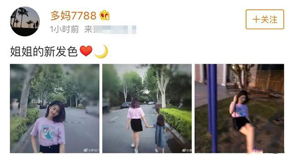 就在刚刚,多妈更了一条微博:姐姐的新发色。