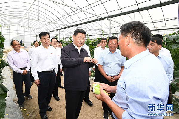 5月20日至22日,中共中央总书记、国家主席、中央军委主席习近平在江西考察,主持召开推动中部地区崛起工作座谈会并发表重要讲话。这是习近平在赣州市于都县梓山富硒蔬菜产业园考察调研。 新华社记者 谢环驰 摄