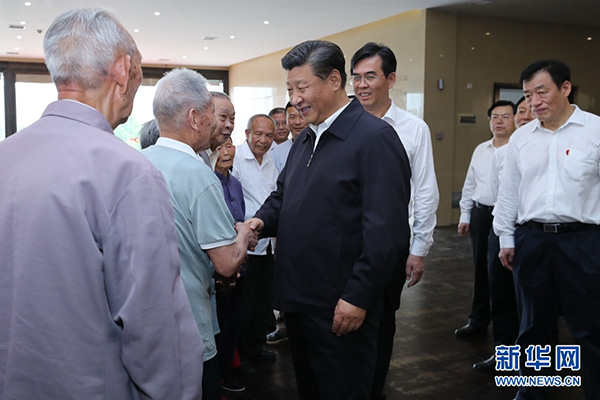 5月20日至22日,中共中央总书记、国家主席、中央军委主席习近平在江西考察,主持召开推动中部地区崛起工作座谈会并发表重要讲话。这是习近平来到红军烈士后代、退伍军人孙观发家看望慰问。 新华社记者 鞠鹏 摄