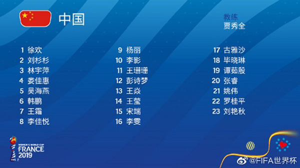 为备战6月至7月在法国举行的2019女足世界杯,中国队在27日公布了一份23人大名单,王霜在列。