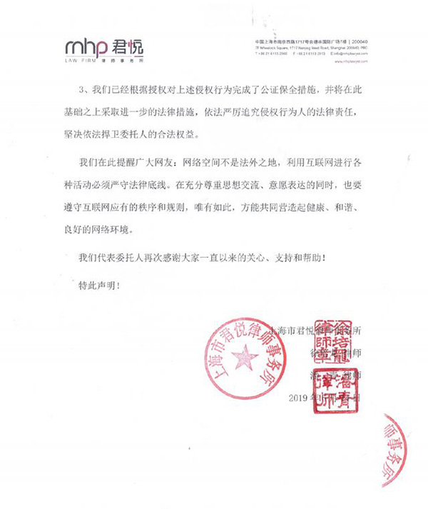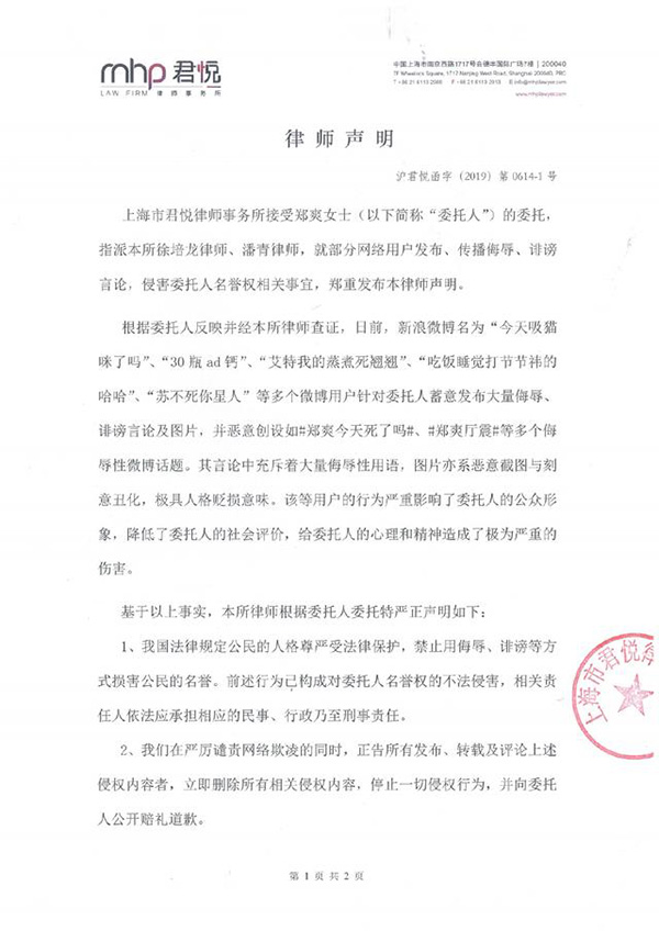 低调看直播官网高清jrs西甲直播jrs信号直播6月14日中午,郑爽男友张恒在微博发布郑爽的律师声明,并配文:“都在同一个美好的星球,又何必去浪费时间做些傻事打扰她的心情?”律师声明中表示,日前有多名网友蓄意发布大量关于郑爽的侮辱、诽谤言论及图片,已严重影响其公众形象、侵犯其名誉权,对其心理和精神造成了极为严重的伤害,要求相关用户立即停止侵权行为并公开赔礼道歉,并将依法追究相关责任。